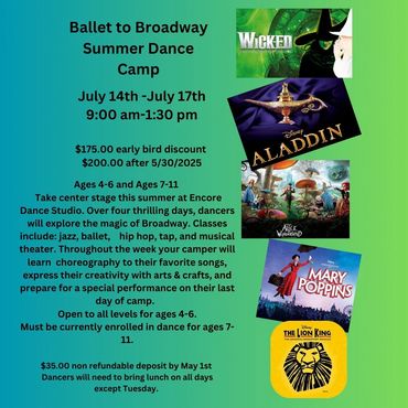 Encore provides both competitive and non-competitive dance classes in ballet, jazz, hip hop, tap, lyrical, pointe, and pre-ballet.